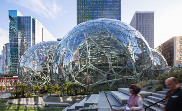 Nằm tại Seattle, Washington, Mỹ. Amazon Spheres là một tòa nhà kính hình cầu với hệ thống cây xanh và thiên nhiên bên trong. Nơi này được thiết kế để cung cấp không gian sống và làm việc gần gũi với thiên nhiên cho nhân viên làm việc tại Amazon. “Quả cầu Amazon” bao gồm các loại cây cối kết hợp cùng không gian mở độc đáo, tạo thành một khu rừng nhiệt đới thu nhỏ tô điểm cho thành phố đồng thời kiến môi trường làm việc của Amazon thêm trong lành, thư giãn.