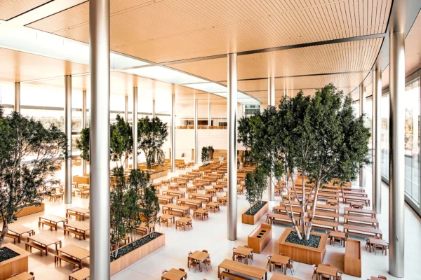 Apple Park là kiến trúc hiện đại bậc nhất được thiết kế theo xu hướng Biophilic. Yếu tố thiên nhiên tại trụ sở chính của Apple tạo ra một môi trường sống lành mạnh và trọn vẹn với thiên nhiên, kích thích tinh thần sáng tạo của mỗi nhân viên tại đây